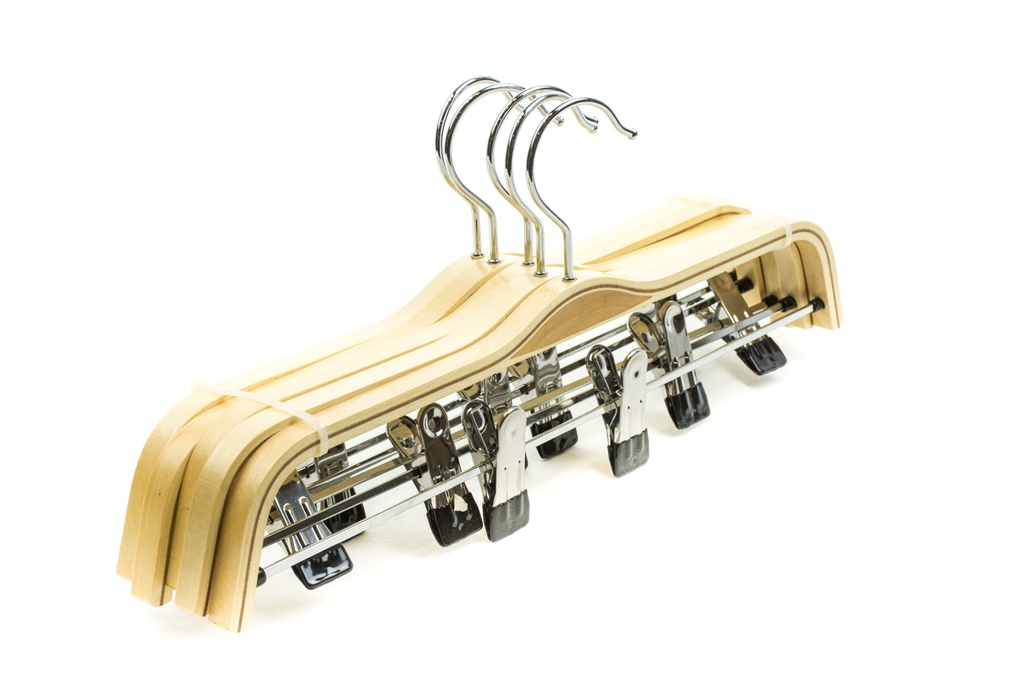 Percha madera contrachapada con pinzas 37.5cm.  Las perchas de madera son perfectas para colgar pantalones. En Decoratedi tenemos a su disposición varios modelos, colores y tipos de perchas para tu tienda o negocio comercial. Este modelo de perchas se venden en paquetes de 5 unidades.