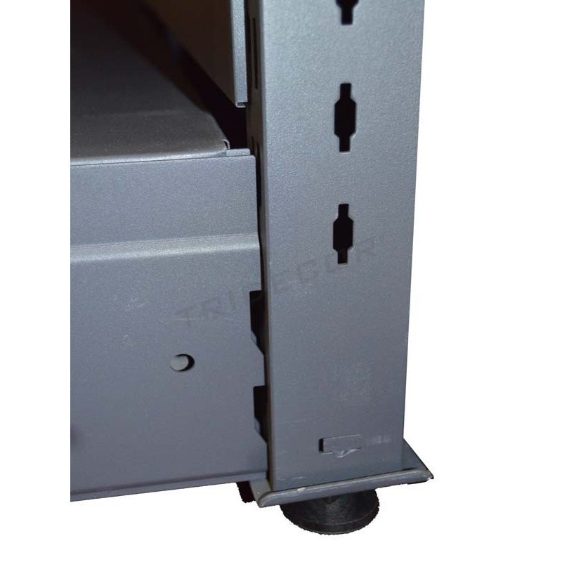 . Estanterías góndola gris con chapa 120x150 cm. Viene con 8 bandejas las 6 superiores de 40 cm y 2 inferiores de 45 cm