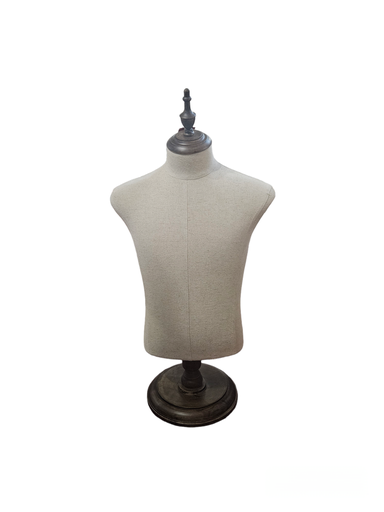 [040894] Child Bust in Fabric with Cup and Round Light Wood Base