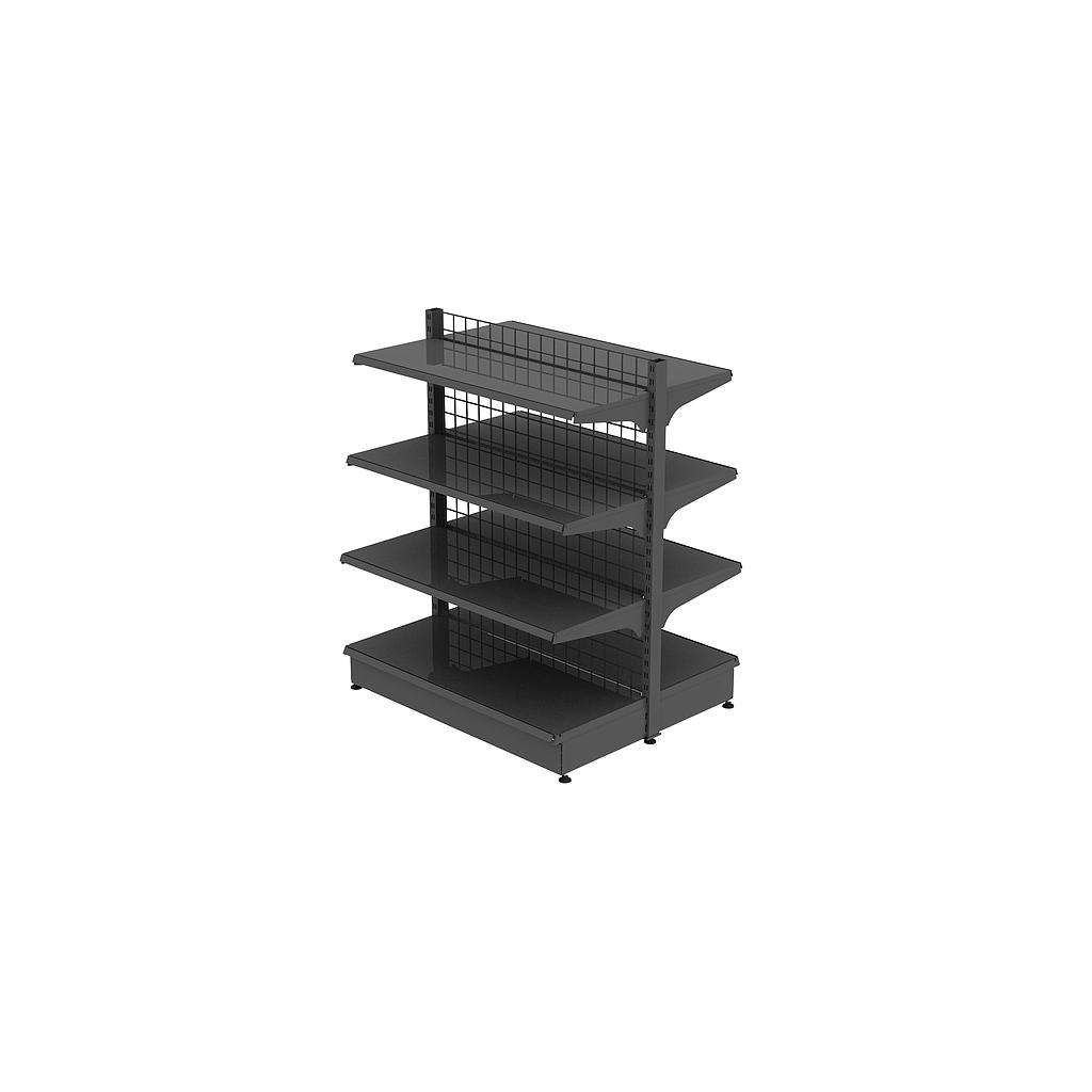 Estanterías góndola gris con malla 120x200 cm. Viene con 8 baldas, 6 de 40 cm y dos de 45 cm. Completa tu estantería con la chapa frontal que cubre el pie referencia 013323