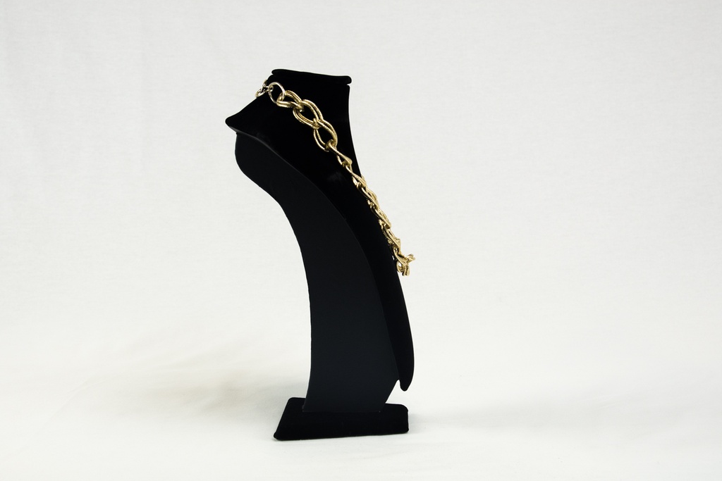 Suportul nostru de culoare neagră adaugă un strop de eleganță și rafinament oricărei încăperi sau vitrine. Este perfect pentru prezentarea colierelor, fie că este vorba de bijuterii fine sau piese statement. Designul simplu, dar sofisticat, face ca acest suport să fie ideal pentru orice decor.