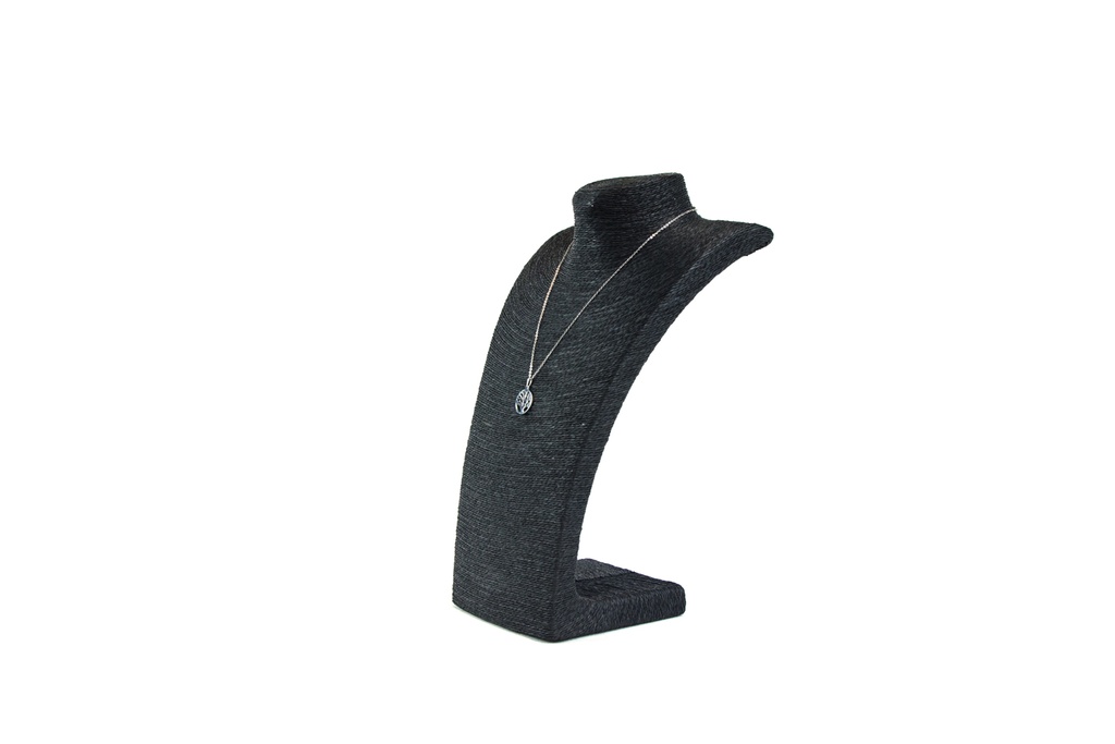 Prezintați cu mândrie colecția dvs. de coliere cu acest suport de expunere elegant și rafinat, meticulos acoperit cu o frânghie neagră de înaltă calitate. Creat pentru a transforma modul în care vă expuneți bijuteriile, acest suport nu doar că oferă colierelor dvs. un aspect de neuitat, dar și le protejează cu atenție și stil.