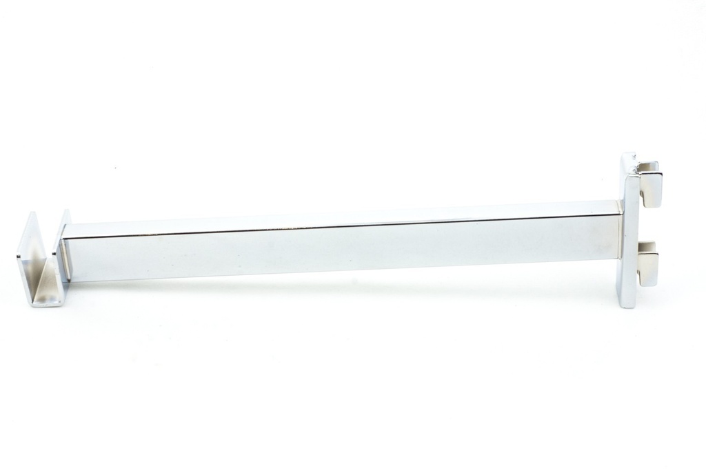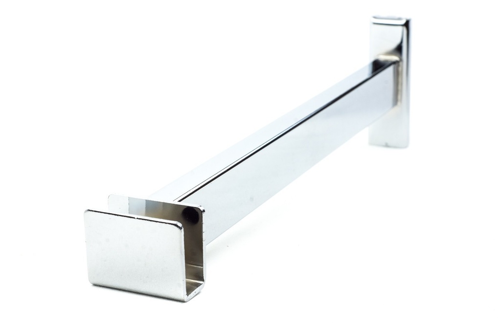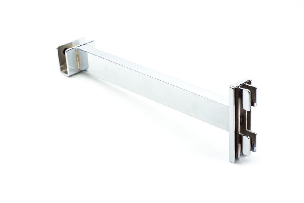 Soporte de barra rectangular para sistema de cremallera con acabado cromado 25 cm