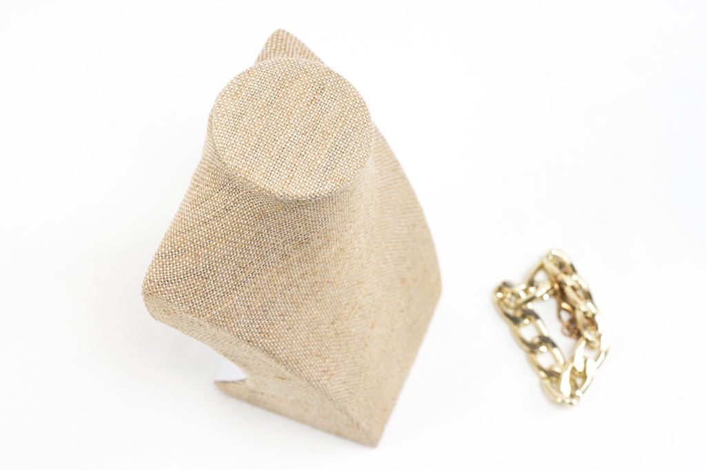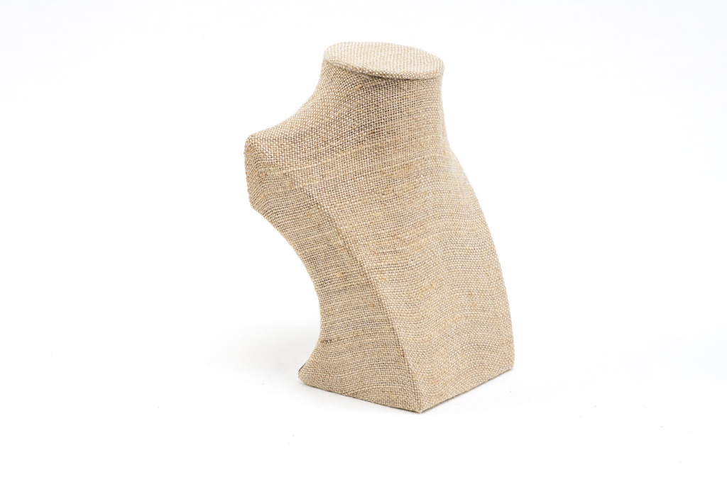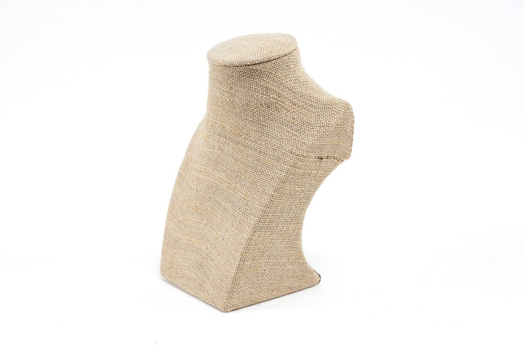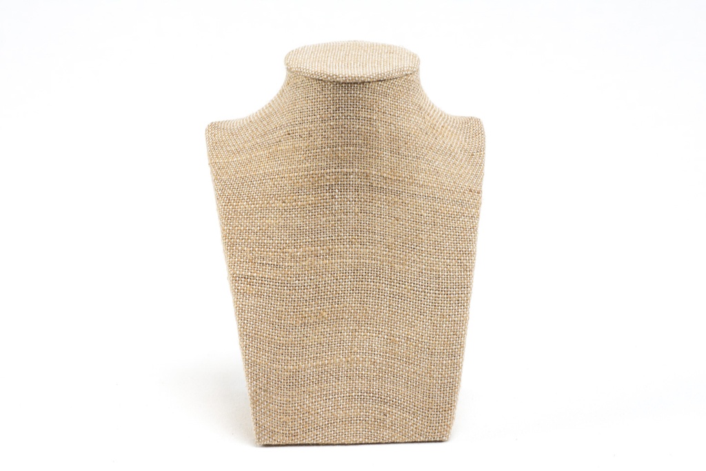 Características: - Material: Elaborado en tela de yute de alta calidad, garantizando durabilidad y resistencia, además de aportar un toque eco-friendly a tu establecimiento. - Color: Tostado natural, fácil de combinar con cualquier paleta de colores y materiales. - Dimensiones: Con un tamaño perfecto de 16 cm de alto, 12 cm de ancho y 8 cm de fondo, es ideal para exhibir collares y colgantes de forma elegante, maximizando la visibilidad de cada pieza. - Versatilidad: Su diseño permite una fácil adaptación tanto en vitrinas externas como internas, adaptándose a las necesidades particulares de tu negocio. - Precio Unitario: Ofrecemos el mejor precio del mercado, posibilitando la adquisición de varias unidades para crear un conjunto armónico y atractivo en tu tienda.