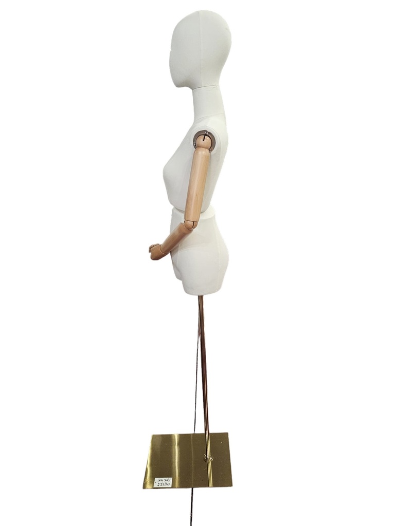 [041335] Busto De Tela Con Cabeza Base Dorado Brazos Madera Clara Cuerpo Articulado