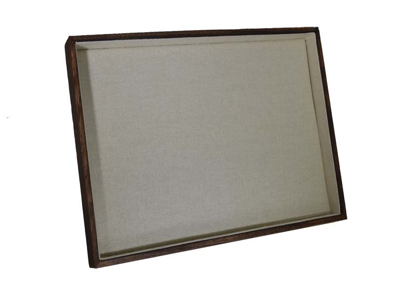 [009374] Holztablett und beigefarbener Leinenstoff 35X24X3 CM