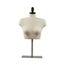 Materialkombination: - Material: Ein harmonisches Zusammenspiel aus Tela (Textil), hochwertigem dunklem Holz und robustem Metall verleiht dieser Büste eine unvergleichliche Textur und ein Gefühl von Wärme. Die Textiloberfläche in einem schlichten Beige fügt sich nahtlos in jede Raumfarbpalette ein, während das dunkle Holz der oberen Sektion einen anspruchsvollen Kontrapunkt setzt. - Basis: Die Basis besteht aus mattiertem Stahl, was nicht nur für eine stabile Verankerung sorgt, sondern auch einen modernen, minimalistischen Touch verleiht.