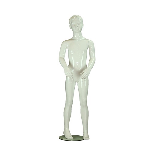 [040854] Sitzender Kinder-Mannequin mit glänzend weißem Gesicht 8-10 Jahre Faser
