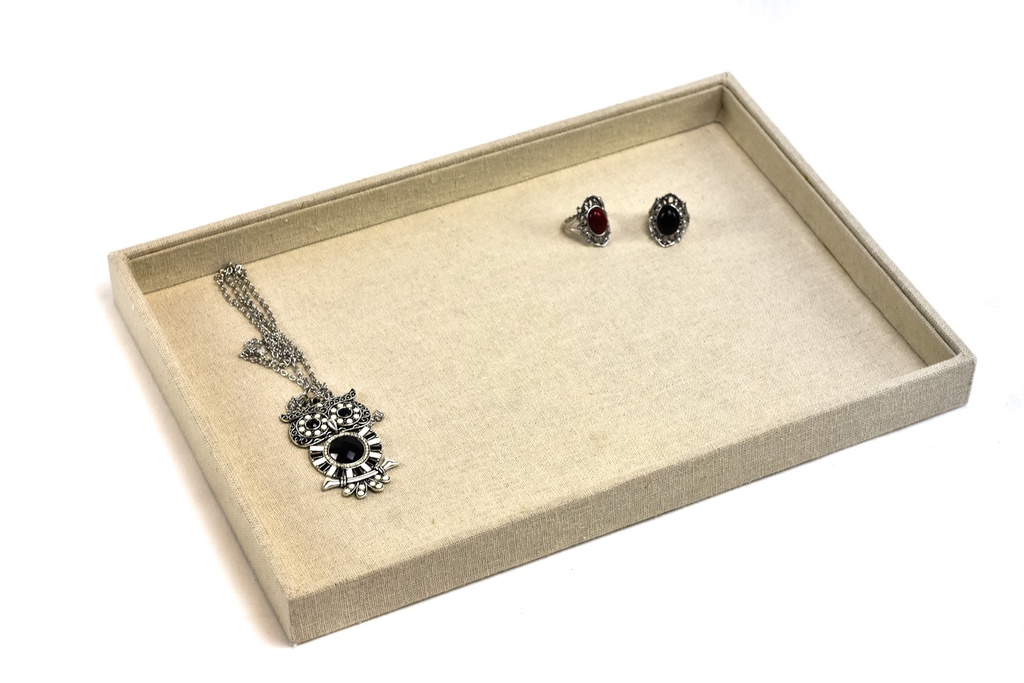 [009719] Beige Linen Jewelry Tray 35X24X3 CM