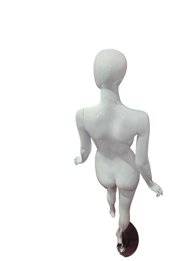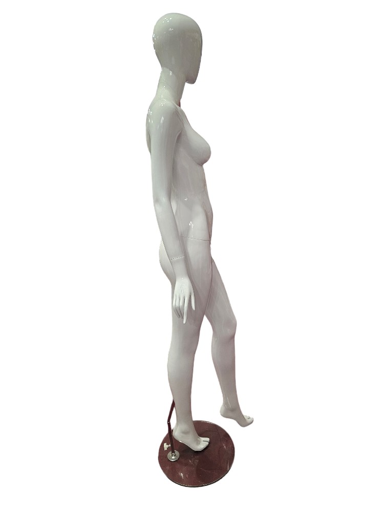 Step into the world of fashion display with our stunningly elegant, glossy white female mannequin. Crafted meticulously from high-quality fiberglass, this mannequin presents both durability and a sleek finish that effortlessly captures the allure and sophistication of your apparel collections.