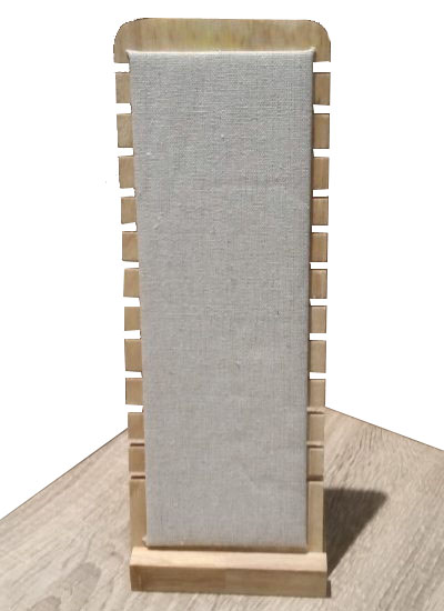 Ce superbe présentoir à bracelets, alliant avec élégance le bois et le lin, est l'accessoire indispensable pour mettre en valeur vos plus belles créations. Fabriqué à la main avec un soin particulier, il s'adresse non seulement aux professionnels souhaitant exposer leurs bracelets de manière élégante dans leurs boutiques, mais aussi à tout amateur de bijoux désirant organiser sa collection de manière esthétique chez soi.