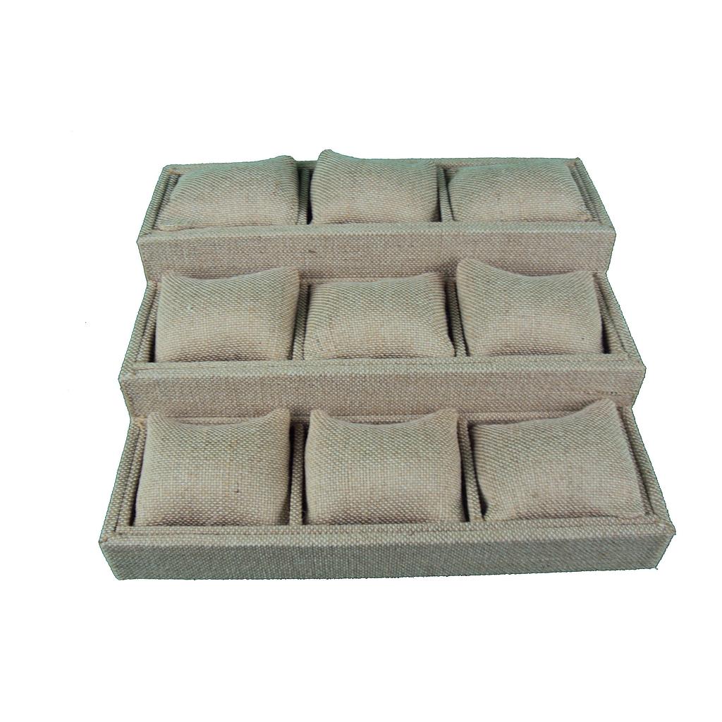 [009554] Présentoir à bijoux rembourré en lin épais 3 hauteurs