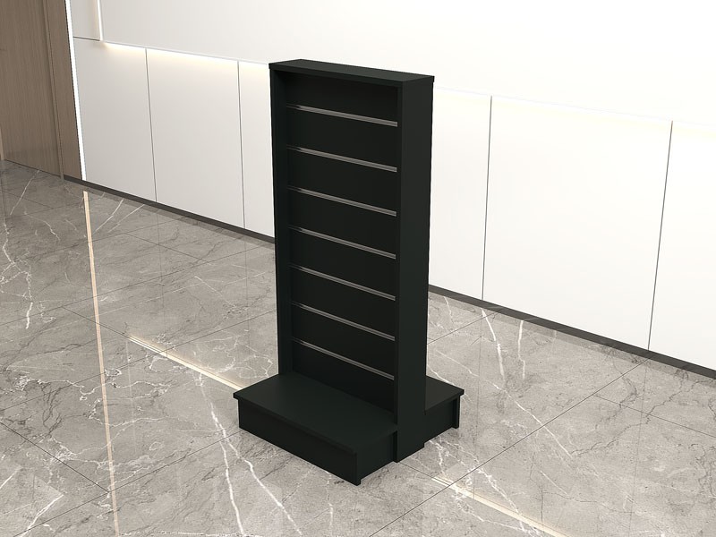 • Exposants avec étagères en bois ou en verre, pour une présence élégante de vos produits.