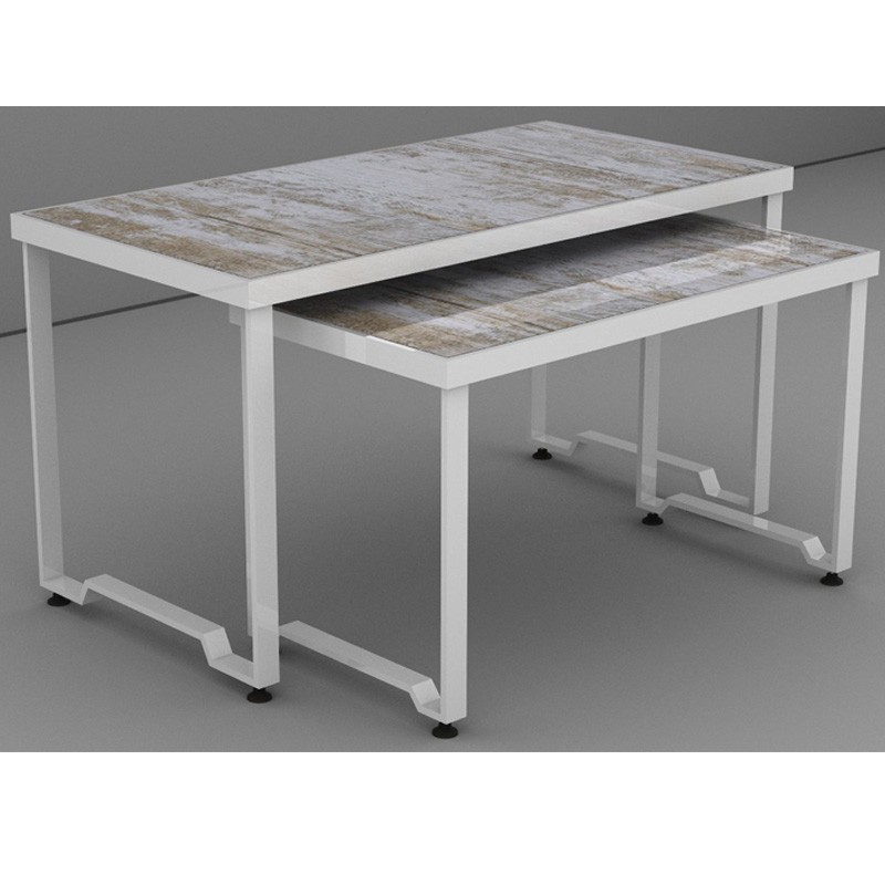 [038084] Afficher les tables Ensemble 2 Hauteurs Couleur Blanc