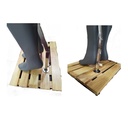 [041150] Mannequin femme en lin gris pied droit bras transparent base transparente