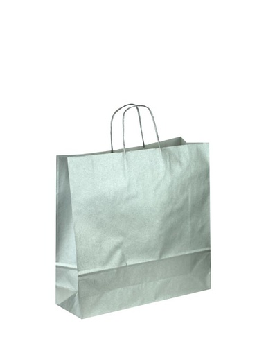 [010598] Sac en papier de cellulose avec poignée torsadée, couleur argent, 32X13X41 CM, 25 unités