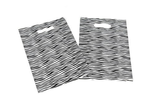 [010076] Sac en plastique imprimé zèbre 16X25cm avec poignée découpée, 100pcs