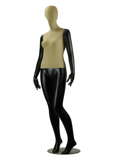 [040572] Mannequin femme noir mat avec des détails et des cheveux