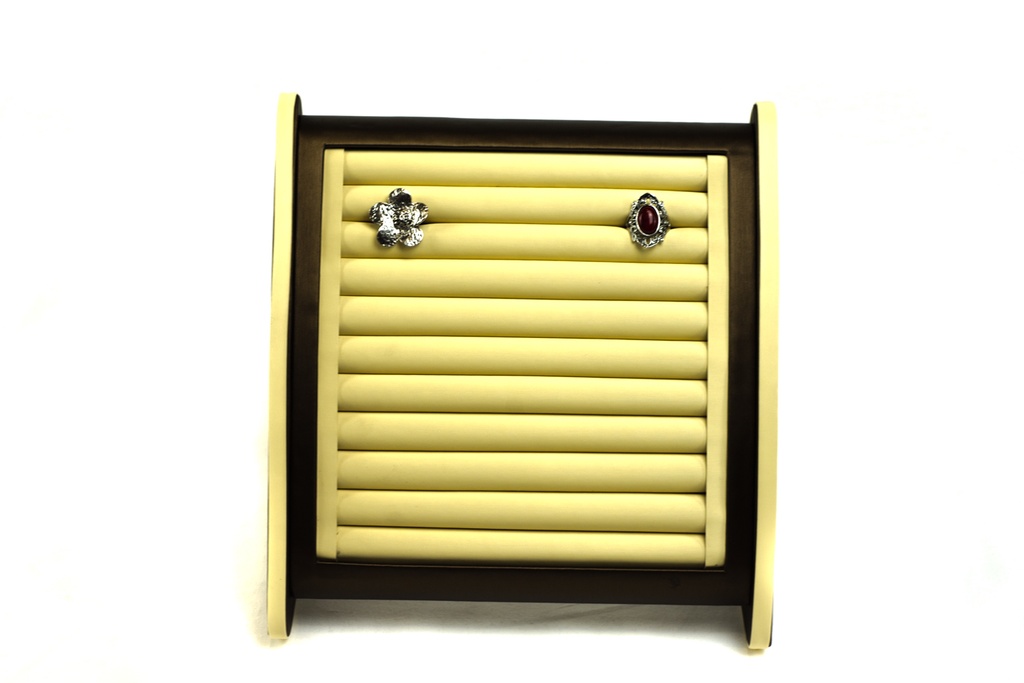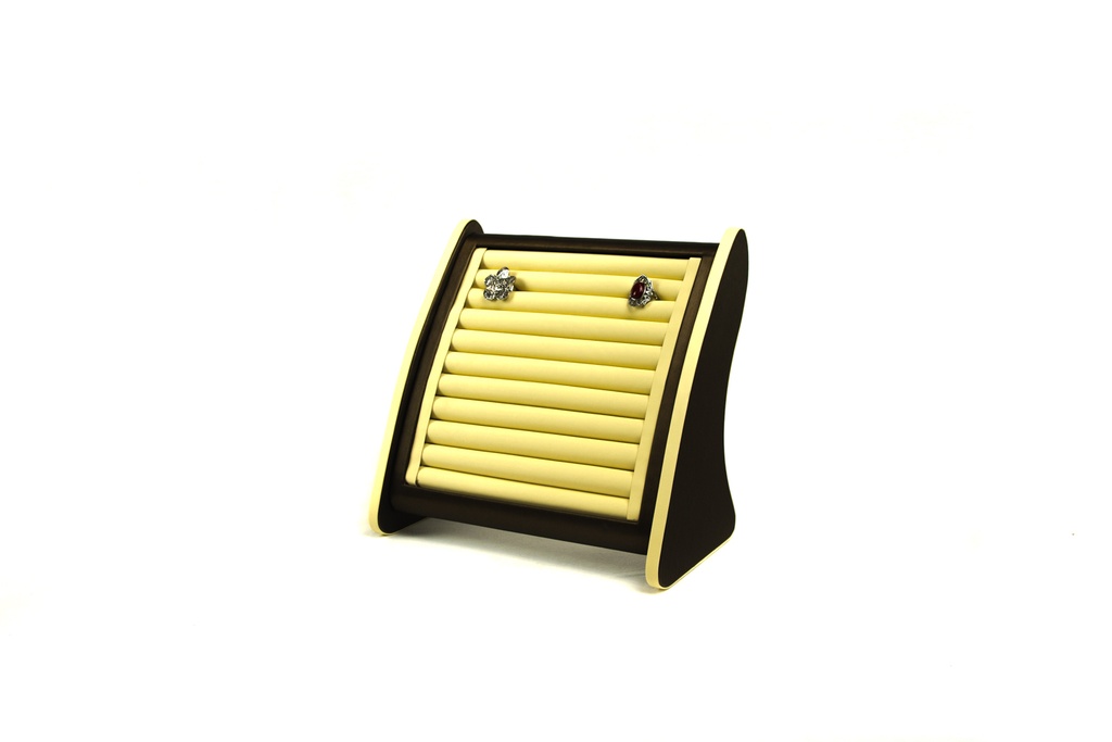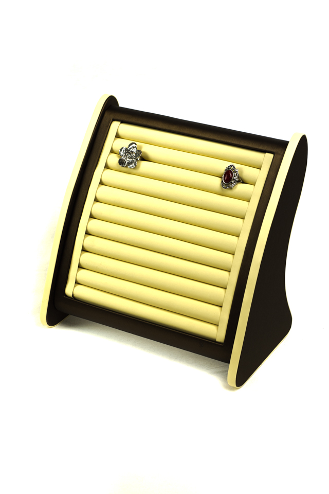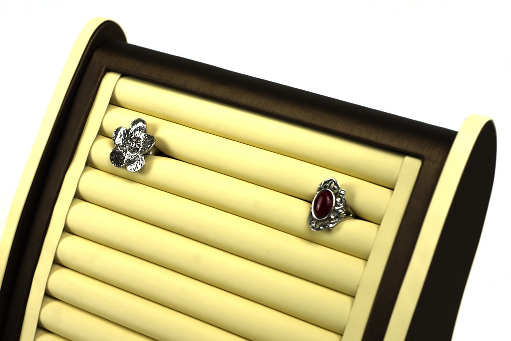 [009874] Espositore per anelli in finta pelle vaniglia/cioccolato