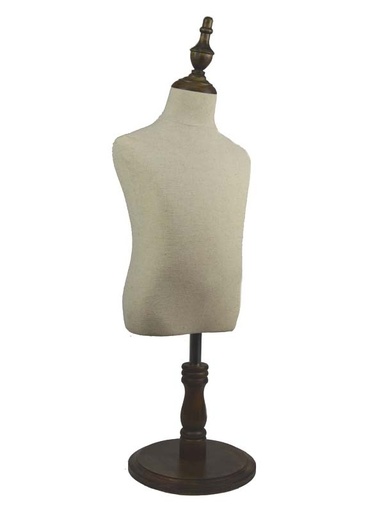 [040378] Busto in lino di un bambino senza testa e braccia con coppa e base rotonda in legno scuro