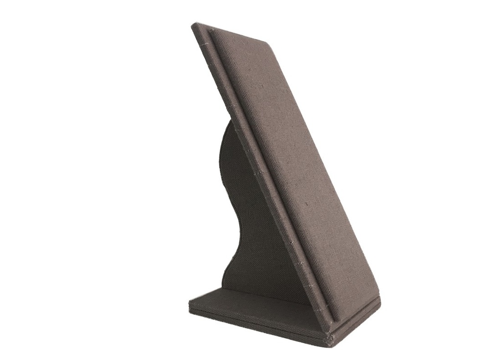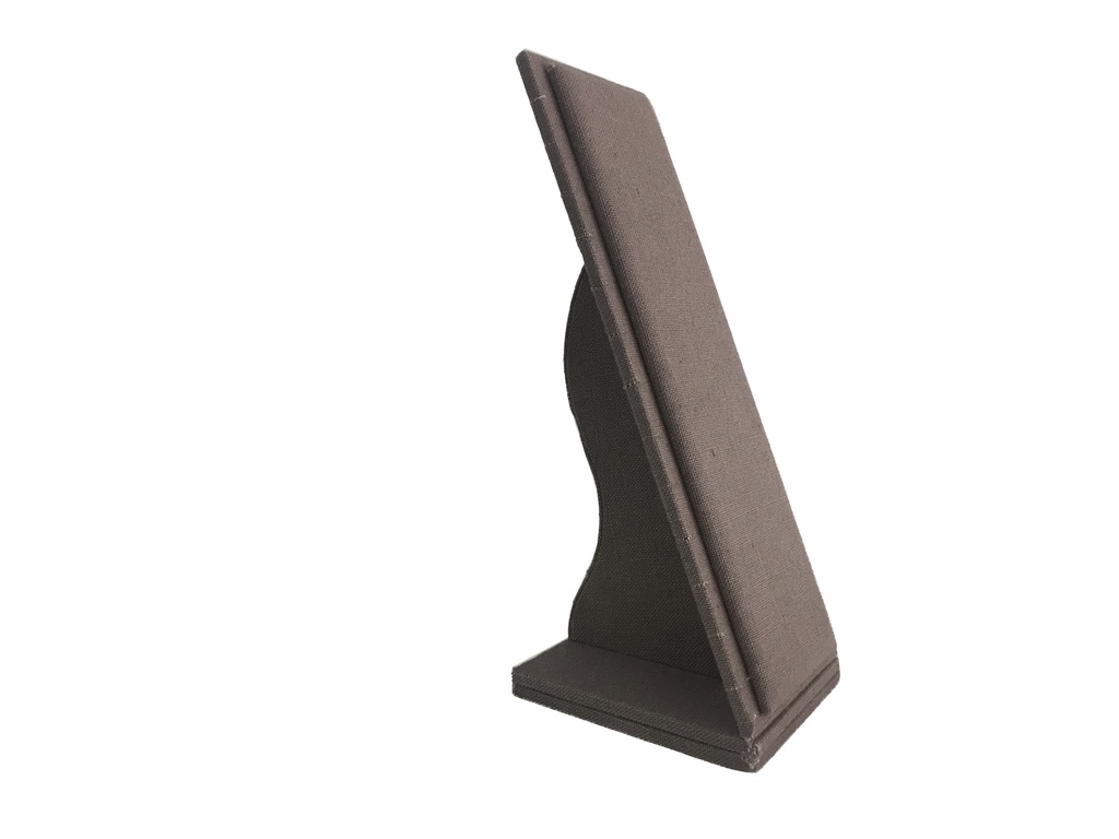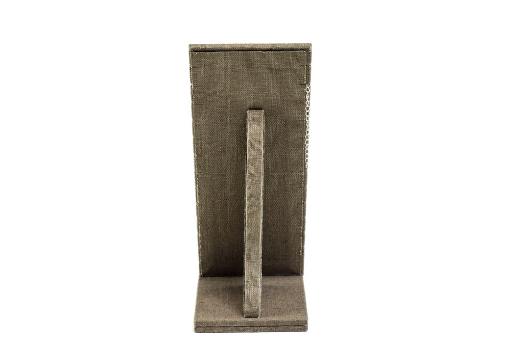 Apresentamos o nosso elegante Expositor Vertical para Pulseiras confeccionado em genuína tela de linho de um sofisticado tom castanho. Este expositor não é apenas um objeto prático, mas também uma peça de decoração intemporal que embeleza qualquer espaço, adicionando um toque de elegância e organização.