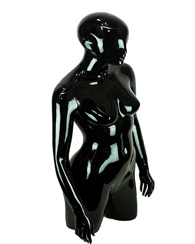 [040270] Busto de mulher em fibra de vidro preto brilhante com braços