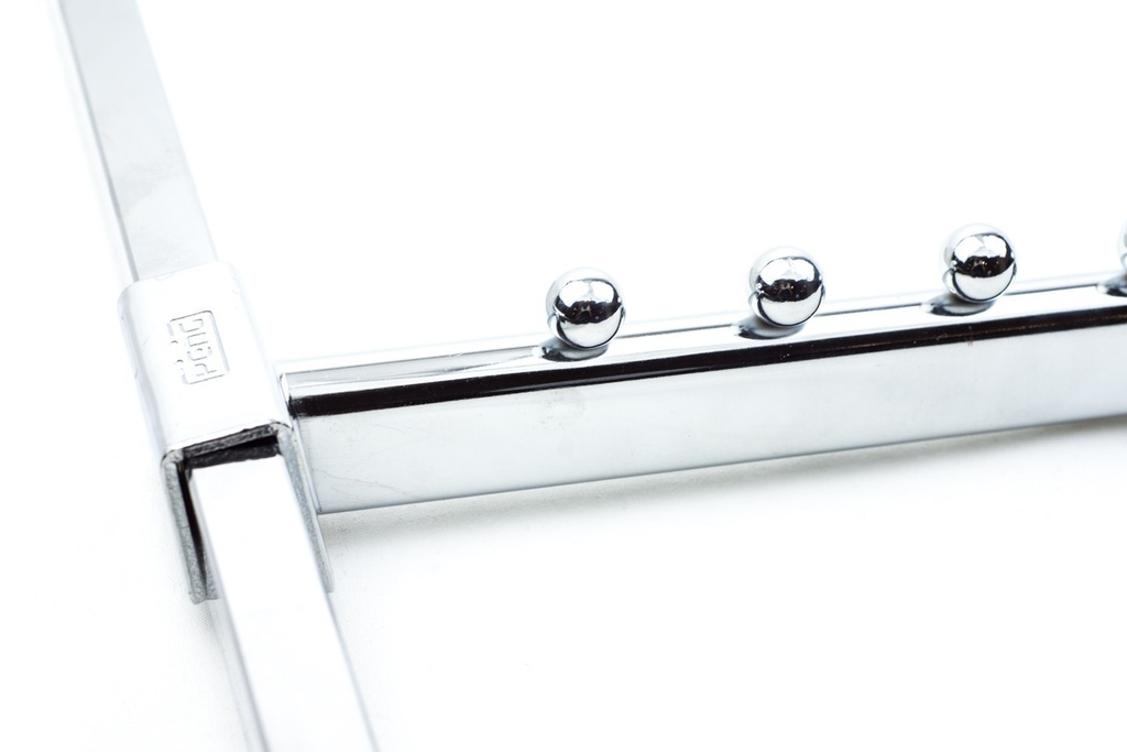 Ganchos cromados para exponer ropa de una forma práctica y sencilla.