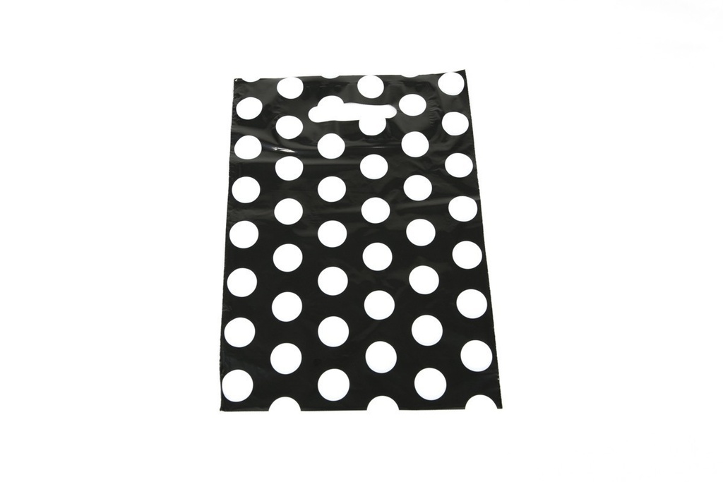 [010781] Pungă de plastic cu mâner tăiat 25X35cm punct alb 100 buc/buc