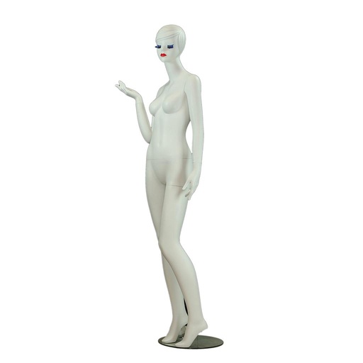 [040836] Manechin feminin în alb mat cu gene albastre și buze roșii