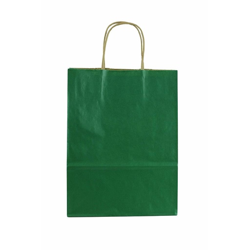 [010007] Sac de hârtie Kraft cu mâner ondulat, culoare verde, 27X22X10 cm, 25 de unități
