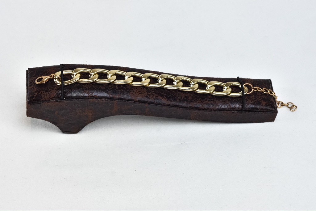 Dimensiones: Con un alto de 6 cm, largo de 22 cm y ancho de 3.5 cm, su diseño compacto y proporcional es perfecto para exhibir una variedad de pulseras y brazaletes.
