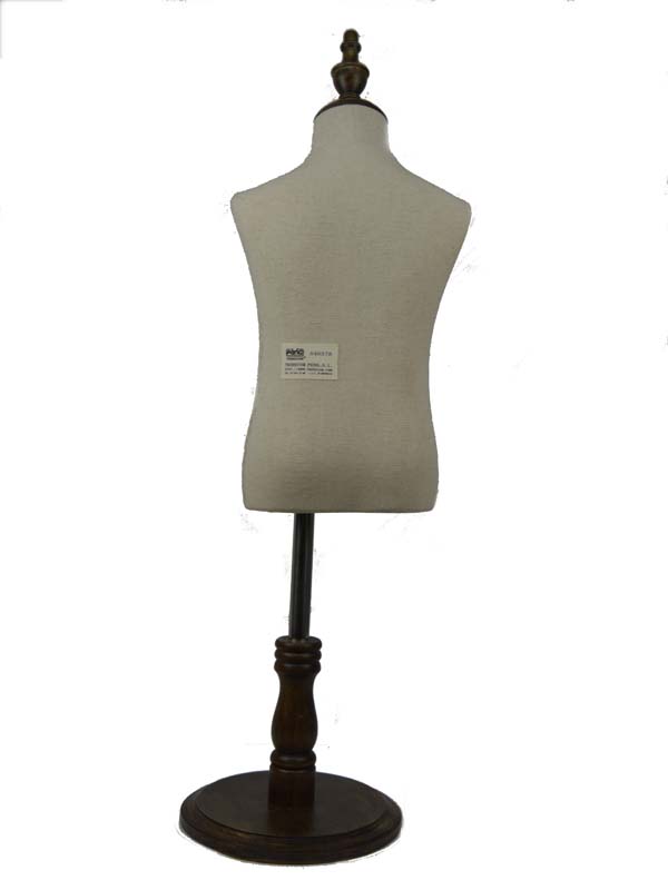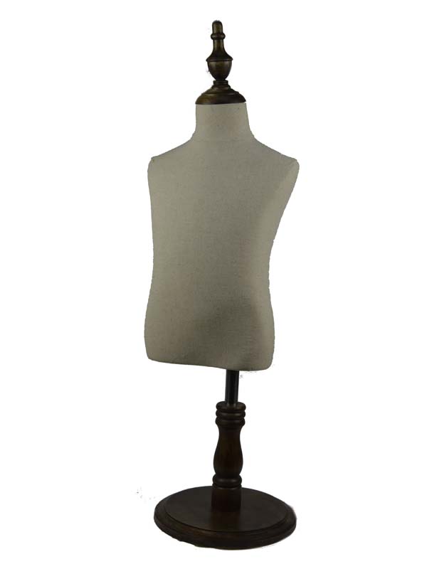 Descubre la elegancia y funcionalidad sin igual con nuestro exclusivo Busto infantil de lino, una pieza imprescindible para cada tienda que busca destacar. Diseñado meticulosamente sin cabeza y sin brazos, este busto culmina en una base redonda de madera oscura, prometiéndote no solo un soporte robusto sino también una estética refinada.
