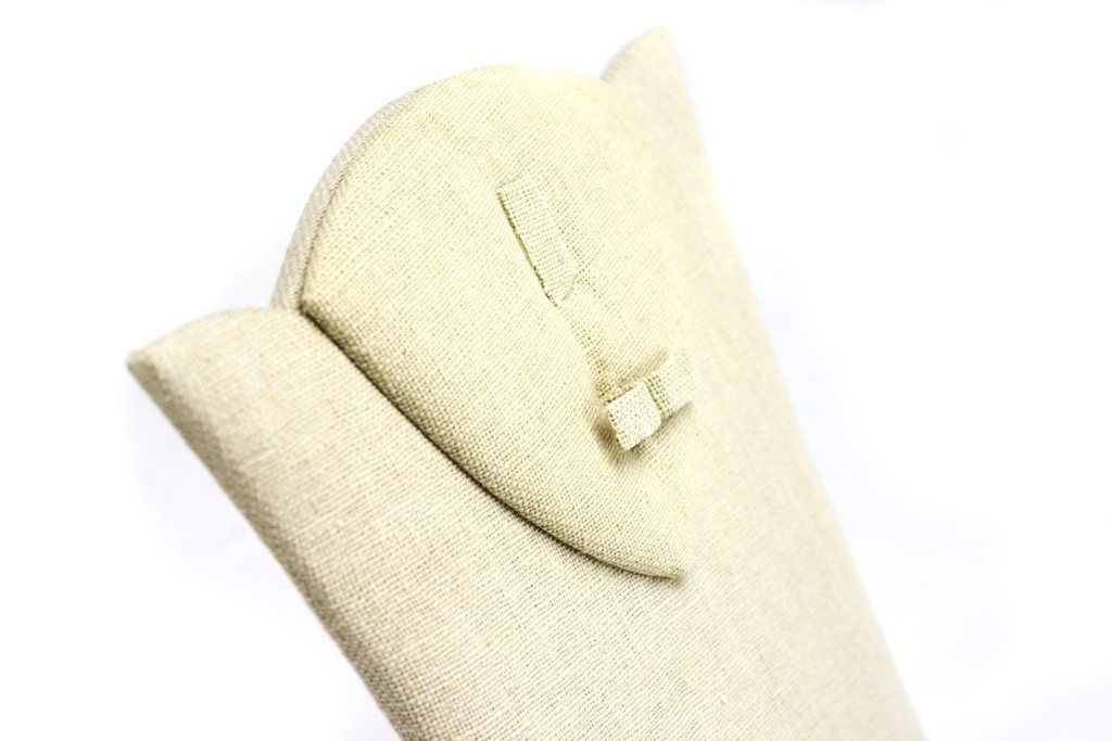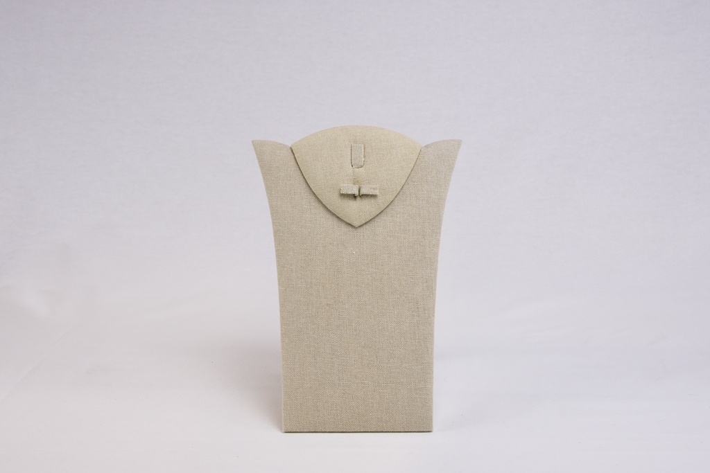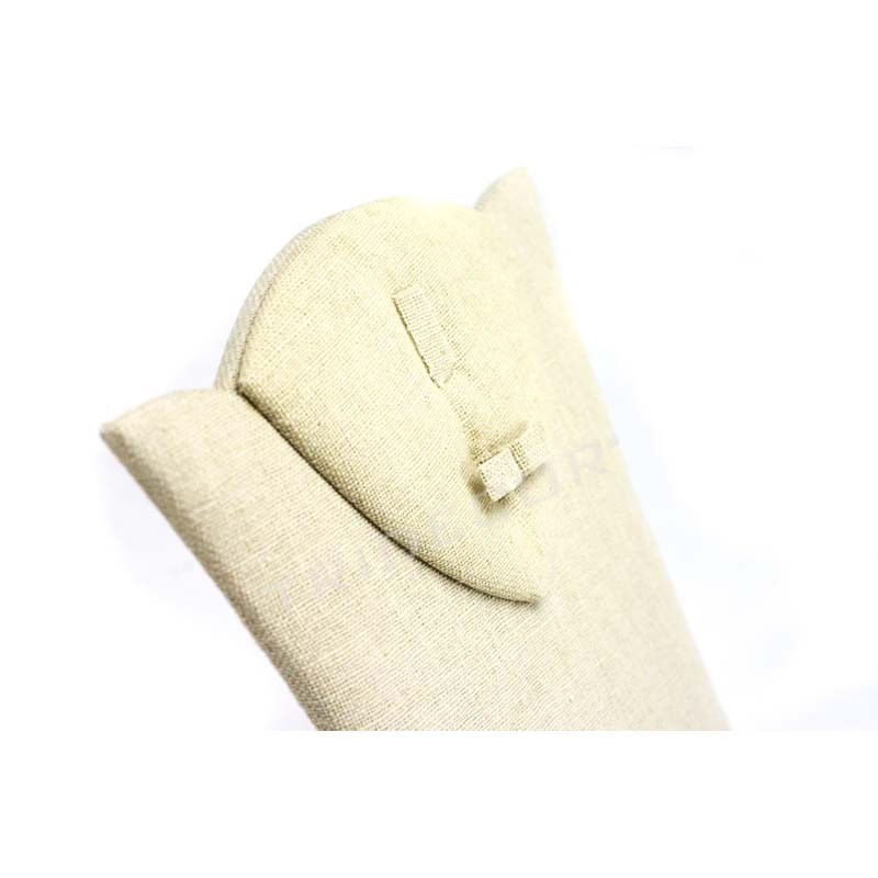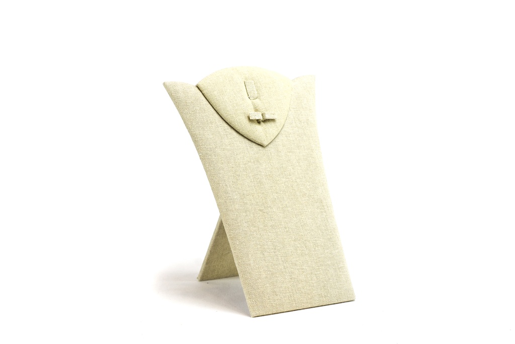 欢迎来到我们的产品展示,今天为您带来的是一款优雅的米色亚麻珠宝套装展示架。这款展示架采用了高质感的亚麻布材质,不仅触感柔软,而且极具耐用性,能够为您的珠宝提供温柔而稳固的保护。