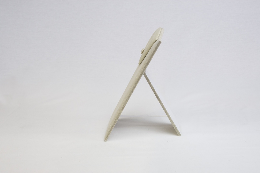 【产品材质】 我们的珠宝套装展示架使用了优质的亚麻布(Tela lino)作为主要材料,这种材料不仅环保,同时还给人一种自然、朴素的美感。