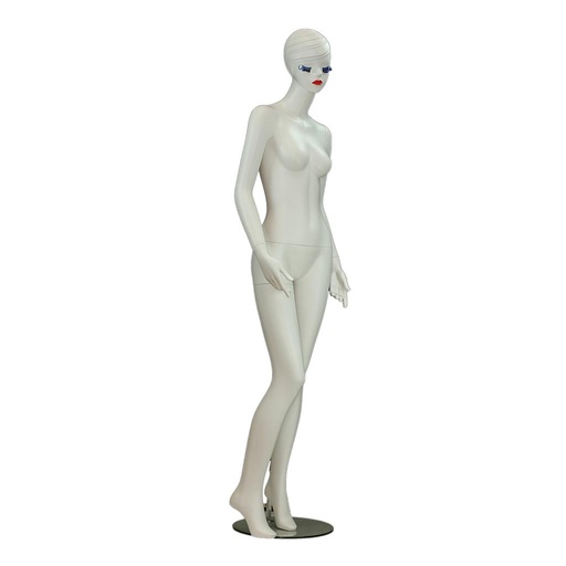 [040837] 全身女模特 亚白 Maniquí de Mujer Fibra de Vídrio Blanco Mate Pestañas Azules y la bios Rojos